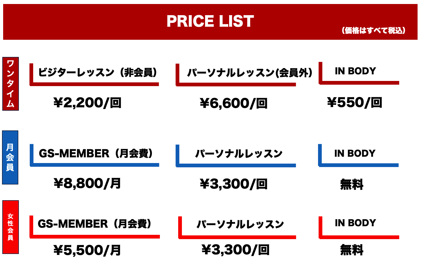 ◉ワンタイムレッスン費 ¥2.200-
