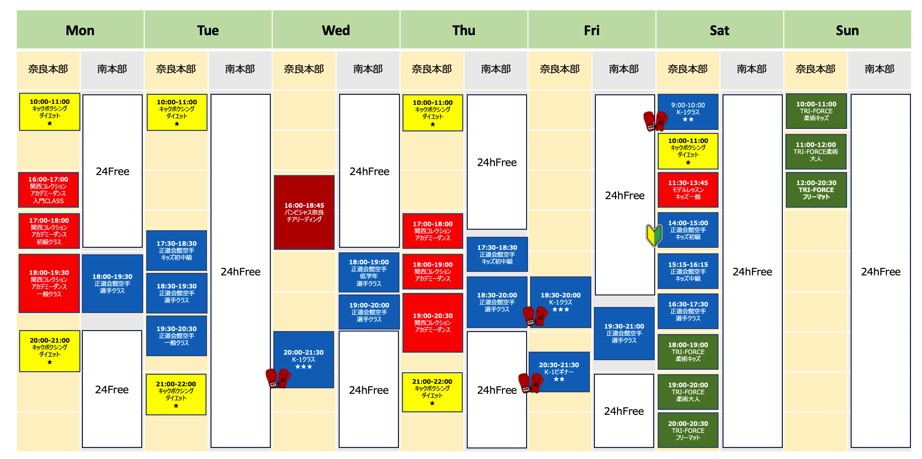 ◉青枠のグローブマークは【K-1】クラス(正道会館格闘技クラス/コンタクトあり)となり参加可能です。